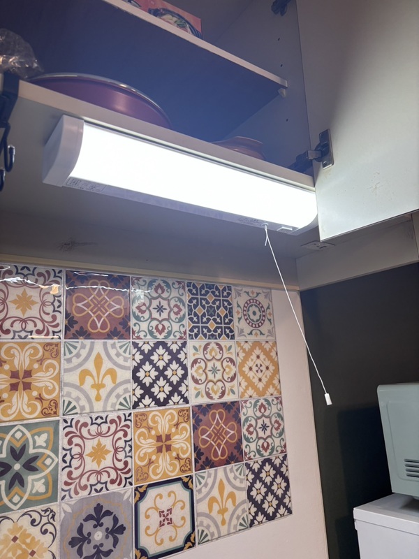 キッチンの手元灯も紐も無くずっと使って無かったみたいで、LEDへと交換し、お客様も満足され。