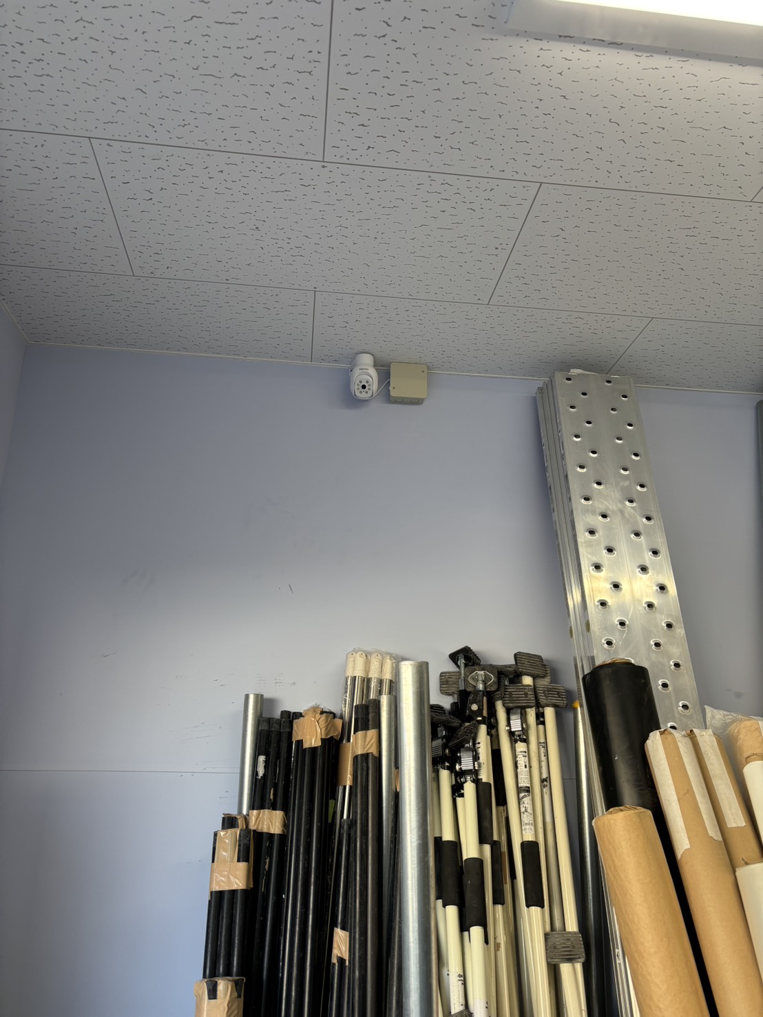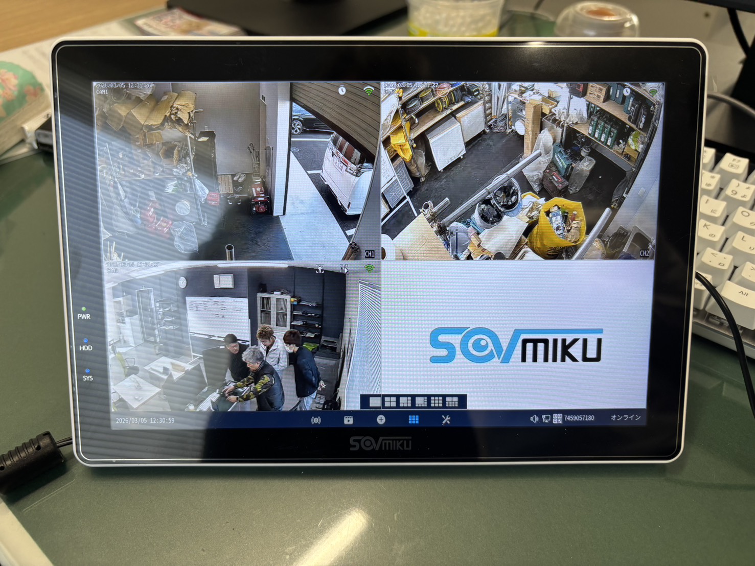 色々と倉庫に高い工具類とかも有り、物騒な事件ばかりなので、倉庫の中の監視と事務所内とに3台設置です。